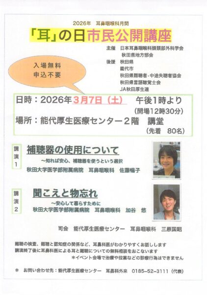 耳の日公開講座 令和8年3月7日